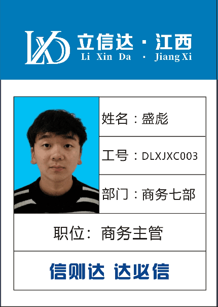 姓名:盛彪 工號(hào):DLXJXC003 部門:江西七部 職位:商務(wù)主管