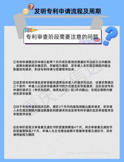 申請日起3個月左右,發(fā)明專利審查合格下發(fā)初審合格通知書;若審查不合格會下發(fā)補正或者審查意見通知書等,申請人需在規(guī)定期限內(nèi)完成答復(fù)