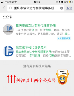 一:微信公眾號搜索<重慶立信達知識產(chǎn)權代理有限公司> 點擊關注公眾號